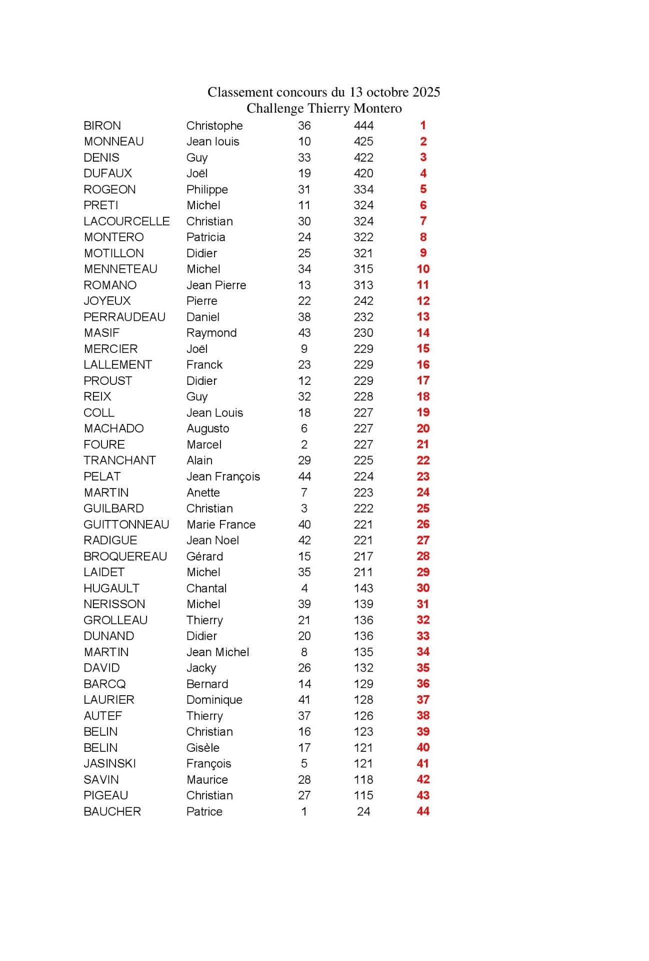 Challenge "Thierry Montero" du 13 oct 2025