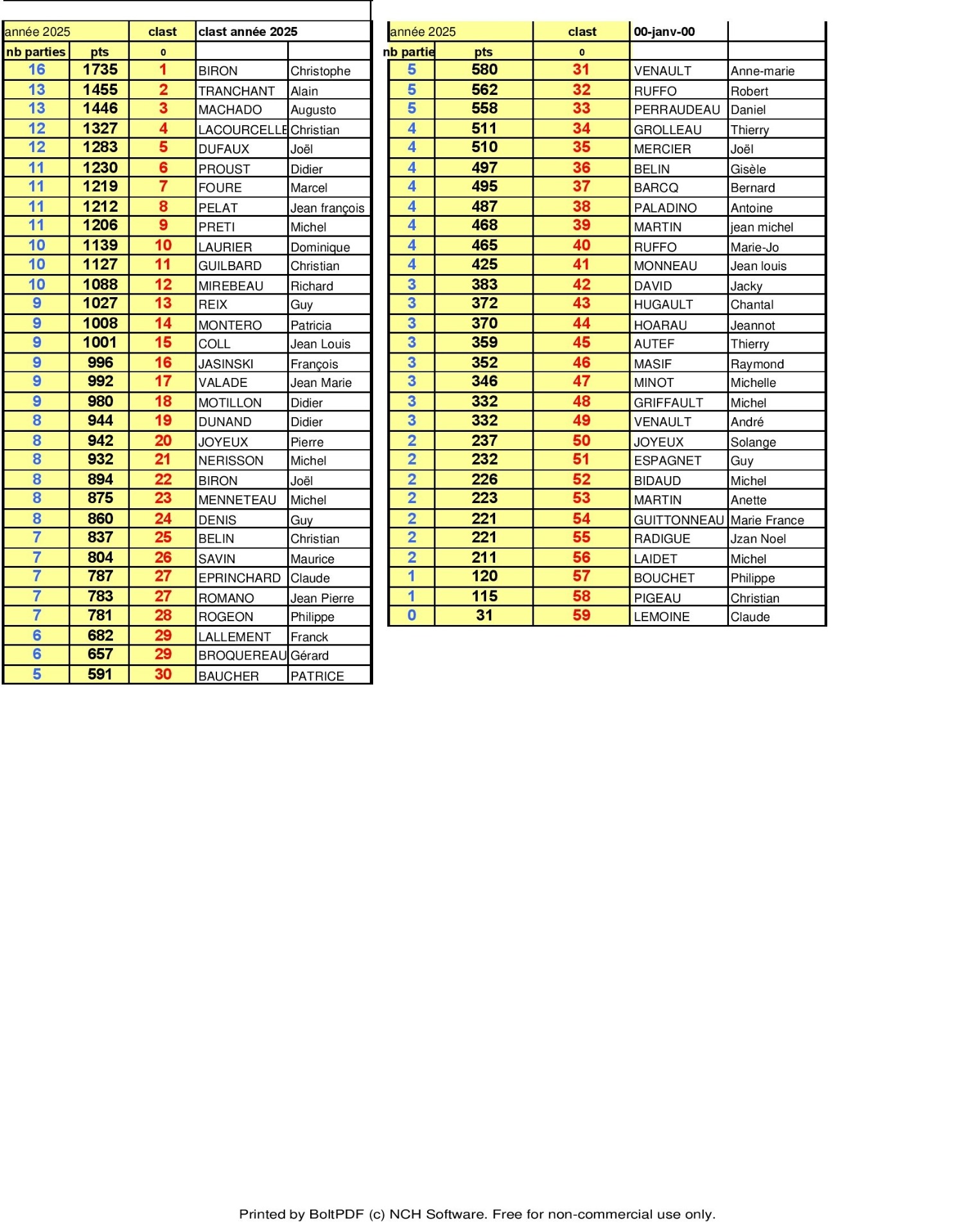 Nous trouvons ensuite les suivants en 3 parties gagnées avec Christian Lacourcelle et en ex aequo André et Anne Marie Venault